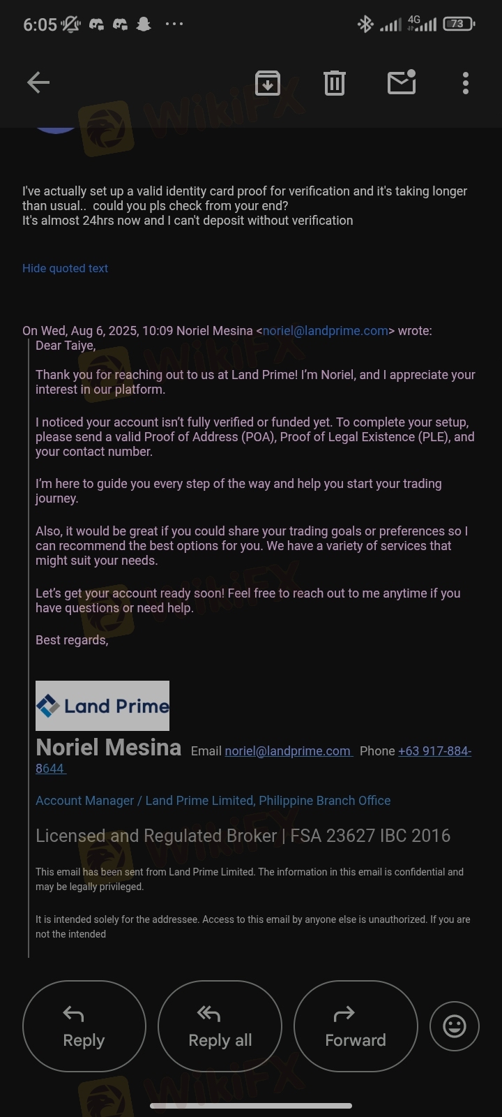 Landprime's customer support is pretty unresponsive. It took them almost a full day to get back to me when I reached out about my PLE verification complaint. The attached screenshot shows the proof.