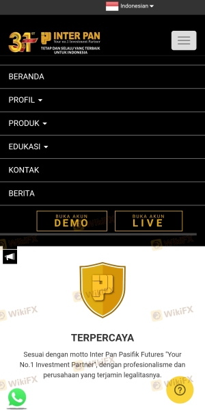 Saya belum buka akun di Inter Pan, cuma lagi cari tahu dulu sebelum coba trading di sini. Dari informasi yang saya lihat, broker ini punya izin resmi di Indonesia dan diawasi oleh Bappebti, JFX, dan ICDX, jadi dari sisi legalitas sudah tergolong aman.