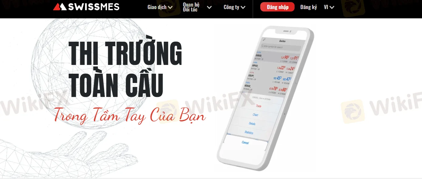 Swissmes là một nhà môi giới Forex và CFDs, có trụ sở tại St. Vincent and Grenadines, được cấp phép bởi Cơ quan Dịch vụ tài chính tại quốc đảo này. Swissmes cung cấp cho khách hàng của mình cơ hội được giao dịch hàng trăm sản phẩm từ forex, chỉ số, kim loại đến cổ phiếu, tiền điện tử. Nhằm phục vụ tối đa nhu cầu của khách hàng, Swissmes luôn nỗ lực để phát triển các điều kiện và nền tảng giao dịch của mình cùng với việc hỗ trợ các công cụ phân tích hiệu quả. Các chương trình khuyến mãi tại Swiss