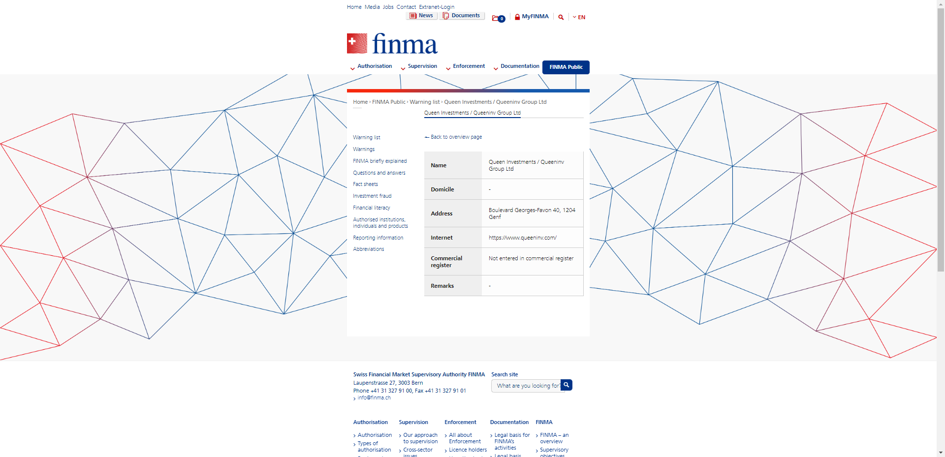 Danh sách cảnh báo các công ty và cá nhân không được ủy quyền Danh sách Cảnh báo - Queen Investments / Queeninv Group Ltd.