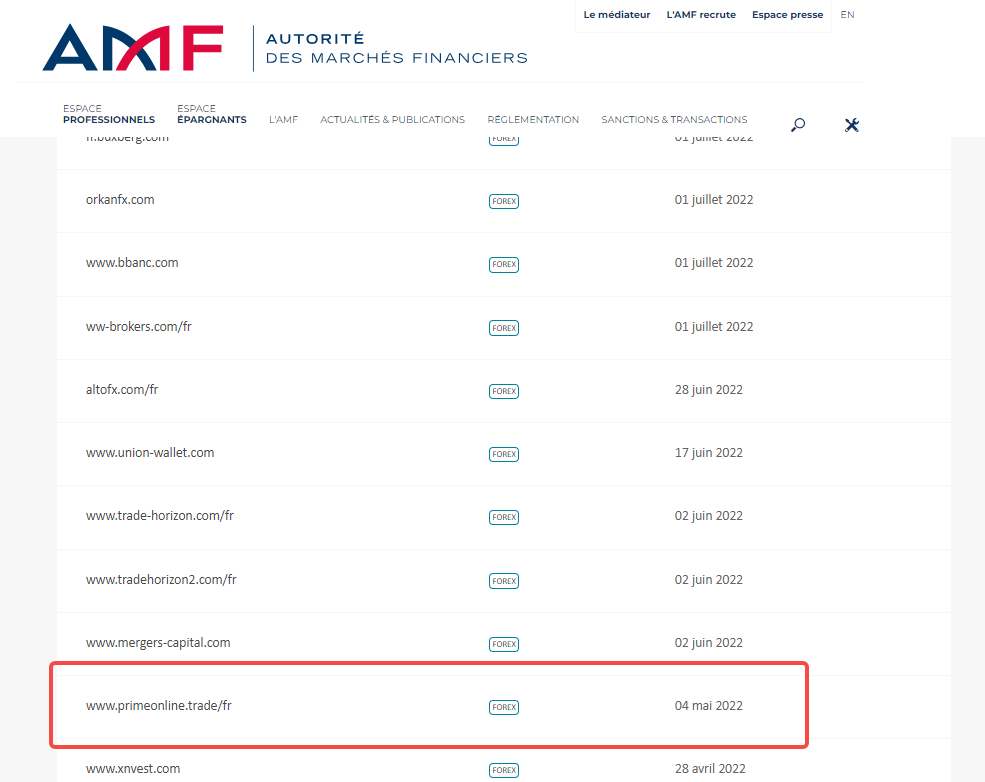 Đây là danh sách các công ty hoặc trang web nằm trong danh sách đen của Autorité des Marchés Financiers (AMF), cảnh báo và/hoặc chiếm đoạt của các công ty được quản lý.