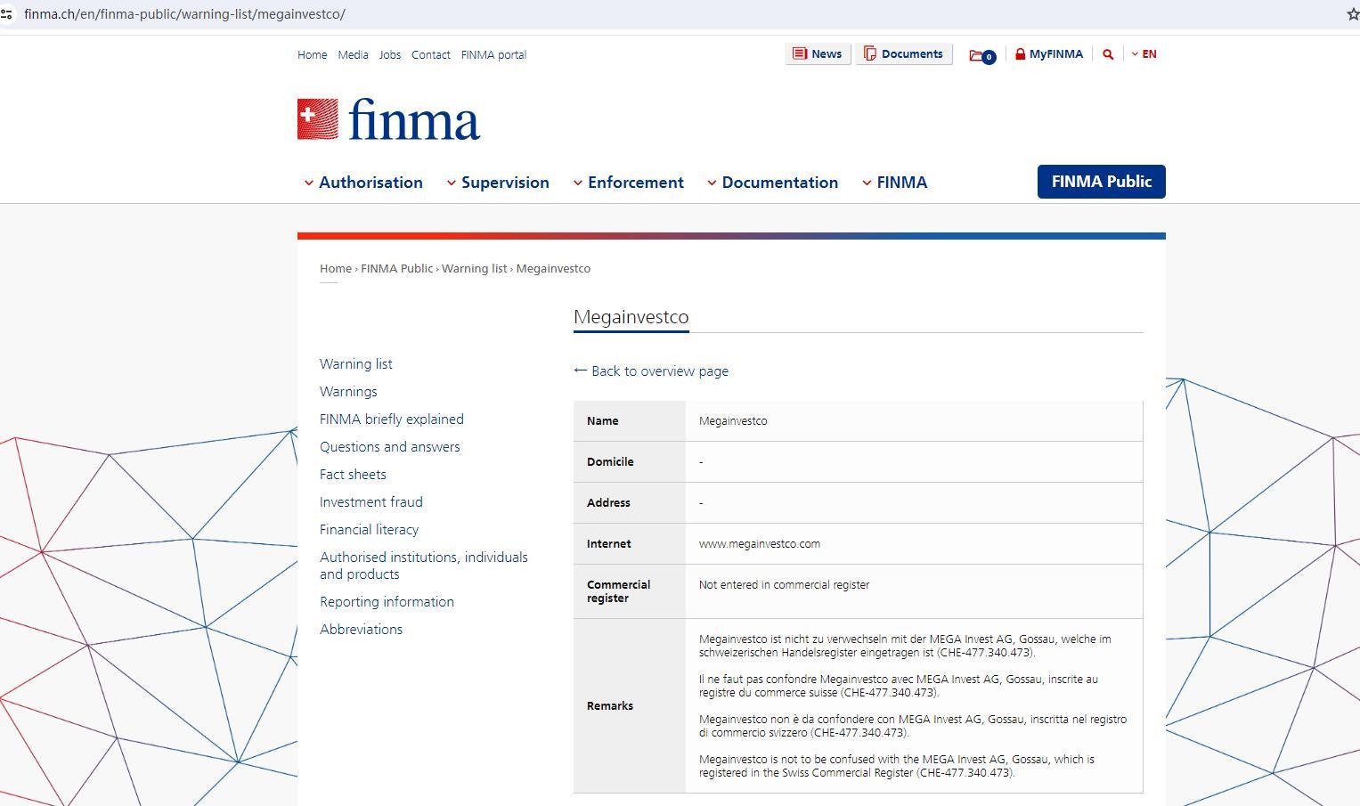 Danh sách cảnh báo các công ty và cá nhân không được ủy quyền Danh sách Cảnh báo - www.megainvestco.com.