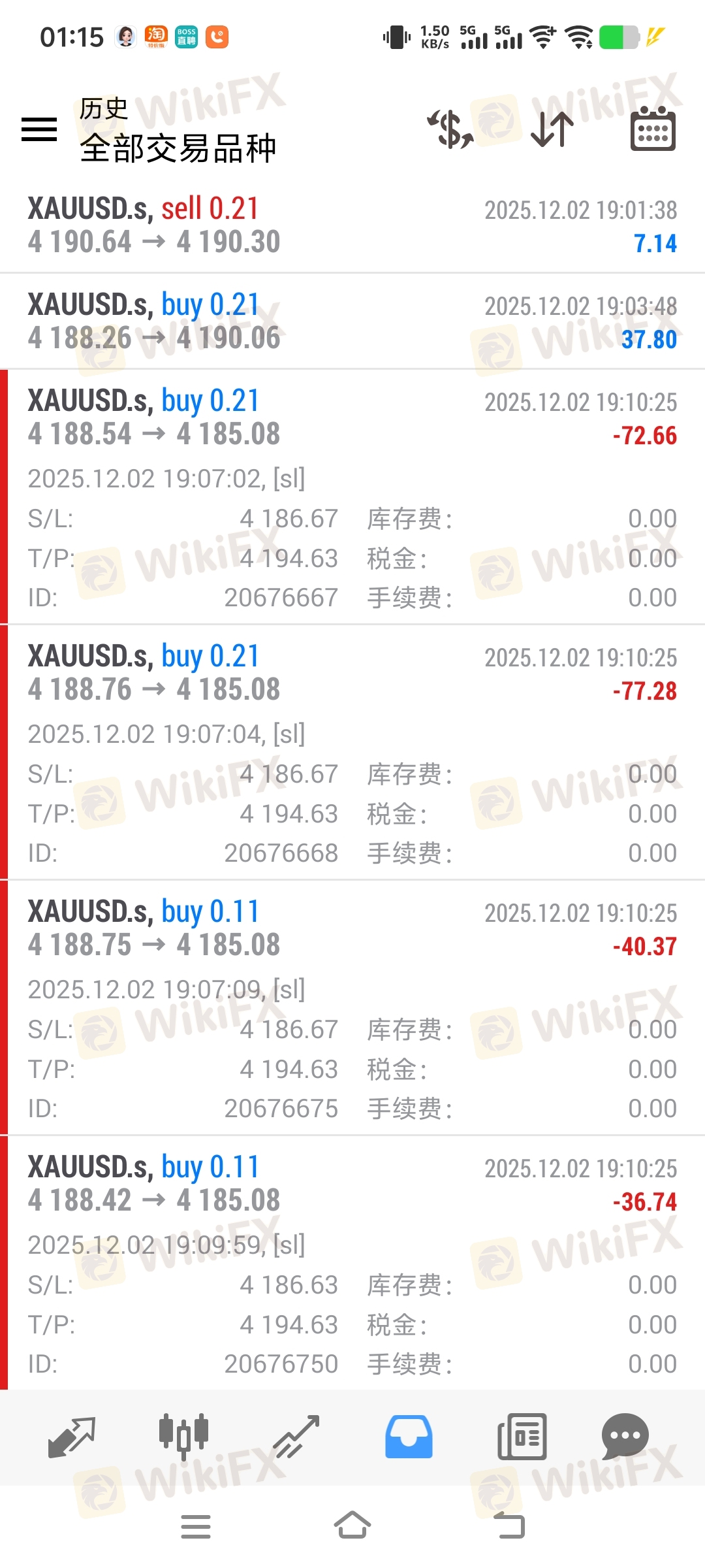 非新闻数据,正常平淡的时间交易,居然黄金还能滑点1-2美元,非常离谱。时间是12月2日晚上凌晨左右,没有任何的新闻数据,也就是一分钟3美金的波动,居然可以滑点4186.67-4185.08=1.59美金,0.21手就是多亏损0.21*159=33.39美金。而另外一单止损线是4179.32,居然滑点4176.05平仓,4179.32-4176.05=3.27美金,滑点多亏损0.51*327=166.77美金亏损。还有很多0.2-1美金的滑点,没空截图保留数据。这样的滑点太离谱了,平台居然说是正常现象,没有赔偿,欲哭无泪!请大家擦亮眼睛,远离坑交易者的平台。