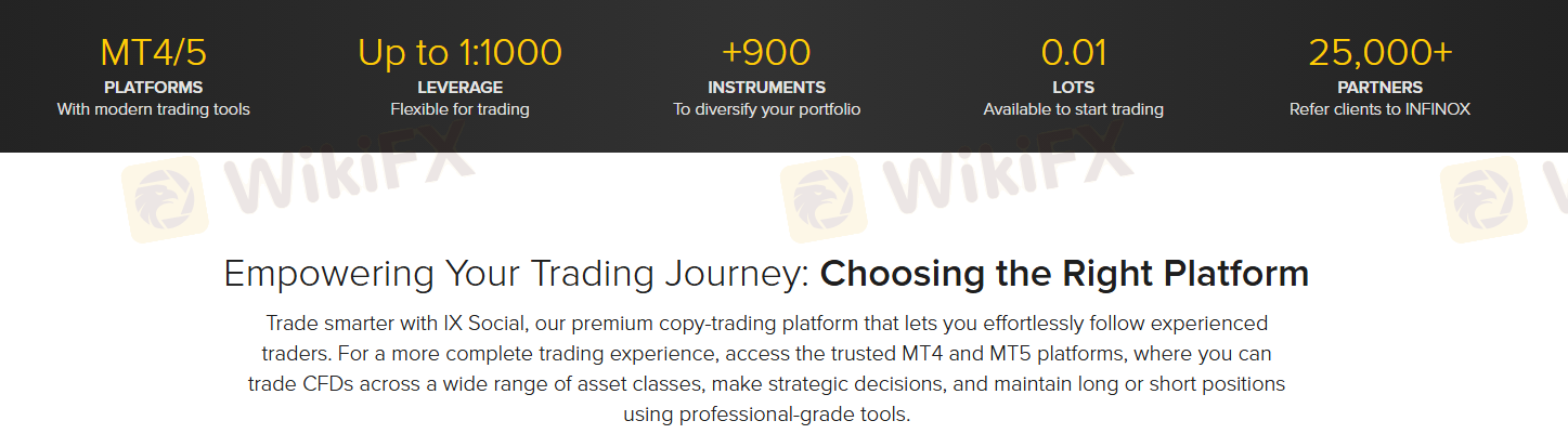 INFINOX hợp tác với các nền tảng giao dịch uy tín MT4 và MT5 , có sẵn trên Desktop(PC/MAC), Mobile(iOS/Android) và Web. Các nhà giao dịch mới thích MT4 hơn MT5. Trong khi những nhà giao dịch có kinh nghiệm phong phú thì phù hợp hơn khi sử dụng MT5. Cả MT4 và MT5 đều cung cấp nhiều chiến lược giao dịch và triển khai hệ thống EA.