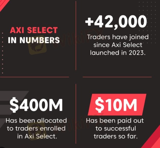 Vào năm 2023, Axi cũng ra mắt chương trình phân bổ vốn đổi mới mang tên Axi Select. Axi Select mang lại cơ hội cho các nhà giao dịch tài năng để giao dịch theo cách của họ và nhận được tài trợ lên đến $1,000,000 USD và giữ lại đến 90% lợi nhuận của họ.