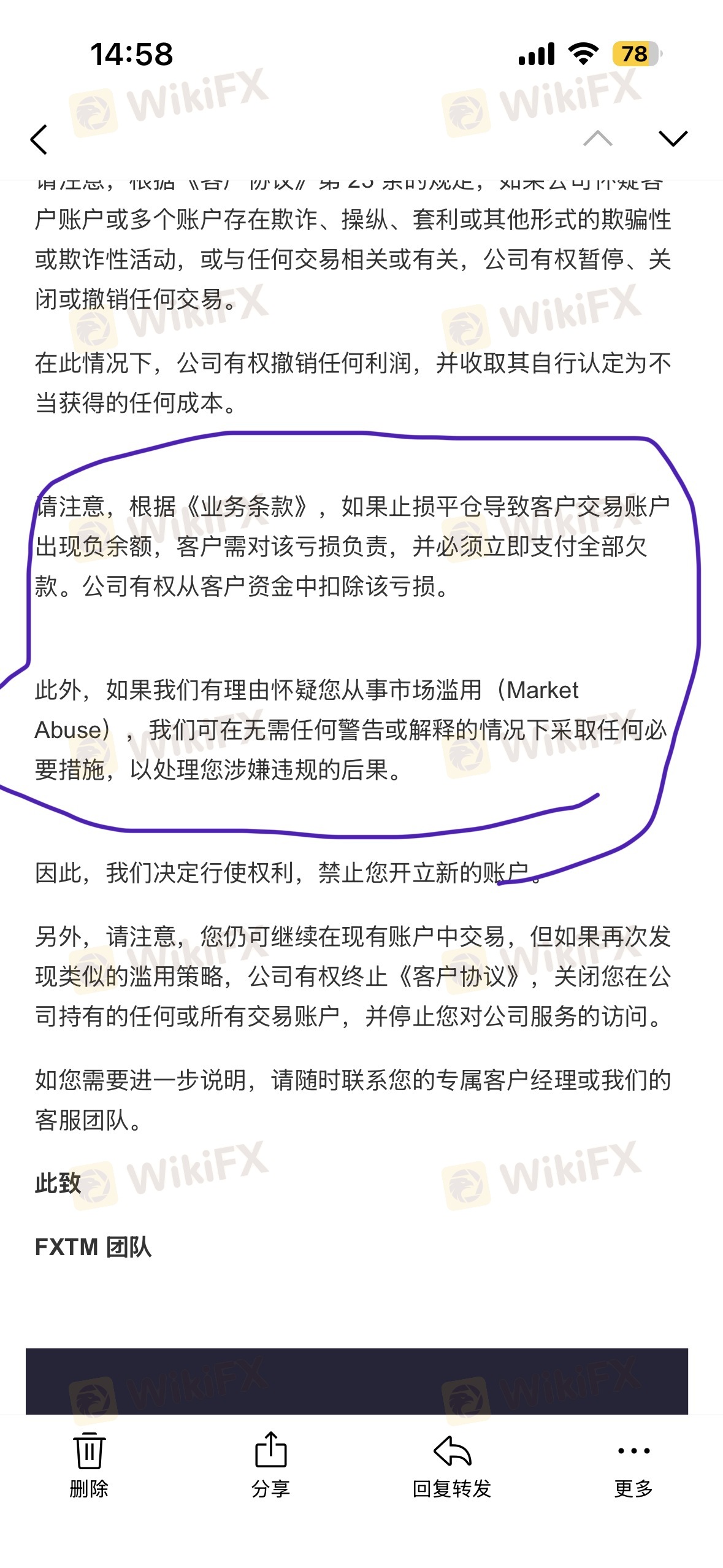 MyFXTM ID: 64662843 Một tổng số USD13400 đã bị đánh cắp và phí không hoạt động USD402 đã được tính từ tài khoản FXTM của tôi vào ngày 27.06.2024. Việc rút tiền đã được thực hiện dưới hoạt động đáng ngờ với các lý do sau đây, 1. Mật khẩu đã được thay đổi vào ngày 27 tháng 6, 7:54 pm MYT và việc rút tiền đã được thực hiện 3 phút sau mà không có xác nhận. 2. Việc rút tiền đã được yêu cầu đến một địa chỉ và phương thức khác so với việc nạp/rút trước đó (TRX thay vì USDT). 3. Phí không hoạt động lớn có thể dễ dàng tránh được bằng cách giao dịch với khối lượng nhỏ (0.01 lot) Tôi đã liên hệ với FXTM ngay sau sự cố, họ vừa mới trả lời từ chối chịu trách nhiệm, TRÍCH DẪN Sau khi điều tra, chúng tôi đã xác định rằng những vi phạm này không phải là kết quả của bất kỳ vi phạm nội bộ nào trong công ty chúng tôi. Có vẻ như thông tin đăng nhập của khách hàng bị xâm phạm, có thể thông qua việc chia sẻ chi tiết đăng nhập với bên thứ ba hoặc không đảm bảo đủ về bảo mật thông tin đăng nhập, đã góp phần vào những sự cố này và việc rút tiền trái phép. Theo mục 32 của Hợp đồng Khách hàng, khách hàng có nghĩa vụ thông báo cho chúng tôi ngay lập tức nếu họ biết hoặc nghi ngờ rằng Dữ liệu Truy cập của họ đã hoặc có thể đã được tiết lộ cho bất kỳ người thứ ba nào, khách hàng đồng ý hợp tác với bất kỳ cuộc điều tra nào mà FXTM có thể tiến hành về việc sử dụng sai mục đích Dữ liệu Truy cập của họ. Do đó, chúng tôi muốn nhấn mạnh những điểm sau đối với bảo mật tài khoản của bạn và phản ứng của chúng tôi đối với sự cố này: Klarifikasi Kewajiban: Công ty không chịu trách nhiệm đối với các khoản thiệt hại do truy cập trái phép do thông tin đăng nhập bị xâm phạm. Khách hàng hoàn toàn chịu trách nhiệm về bảo mật và bảo mật thông tin đăng nhập của mình. KẾT THÚC TRÍCH DẪN Trước tiên, tôi muốn chỉ ra rằng vé của FXTM đã được gửi đến email cũ của tôi mặc dù đã thay đổi địa chỉ email của tôi - hệ thống bảo mật của FXTM còn rất nhiều điều cần cải thiện. Hơn nữa, FXTM khẳng định rằng việc vi phạm là do thông tin đăng nhập của tôi bị xâm phạm mà không có bằng chứng cho thấy đó không phải là một vi phạm bảo mật hoặc công việc bên trong từ phía FXTM. Tôi chưa bao giờ chia sẻ thông tin đăng nhập FXTM/email của mình với bất kỳ ai và cũng không thể truy cập được cho bất kỳ ai ngoại trừ tôi. Trong tất cả các phản hồi đánh giá trực tuyến của FXTM, luôn được đề cập đến "Hãy luôn nhớ rằng FXTM luôn ở bên bạn". Tôi mong đợi được bồi thường đầy đủ và FXTM không đổ lỗi cho phía khách hàng. Tôi sẽ đẩy mạnh vấn đề này lên Ủy ban Dịch vụ Tài chính - Mauritius. Số tiền này thay đổi cuộc sống của tôi, tôi không mong đợi một sàn giao dịch lớn như vậy lại có biện pháp bảo mật kém và từ chối chịu trách nhiệm về nó. Tôi khuyên bất kỳ ai quan tâm đến quỹ của mình không nên gửi tiền dưới các biện pháp bảo mật tồi tệ như vậy.