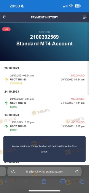 Tôi đã nhận được một số quảng cáo về giao dịch Robot và nhấp vào liên kết, ngay lập tức nhận được cuộc gọi từ Kwakol (phillip.williams@kwakolmarkets.com) và người đó yêu cầu tôi đầu tư khoản tiền gửi có thể hoàn lại là 250 đô la, nơi robot sẽ thực hiện công việc giao dịch của mình và sẽ có lợi nhuận hàng ngày như họ đã lên lịch và lập trình. Tôi cũng được chỉ định cố vấn Tài chính tên là Alexandra, người nói sẽ dạy tôi giao dịch. Họ đã thực hiện một số giao dịch khi tài khoản của tôi cho thấy lợi nhuận hơn 50 đô la và sau đó có một số giao dịch bị âm và chúng là các vị trí không bị dừng. Tôi theo dõi và không có phản hồi. Tôi đã rời đi trong tháng do các kỳ thi của tôi, điều này xảy ra vào tháng 12 năm 2022. Người sau đó tên là Mathew đã gọi cho tôi vào ngày 26 tháng 1 năm 2023 (Mathew.Jefferson@kwakolmarkets.com). Anh ấy giới thiệu bản thân rất hay và nói rằng anh ấy có 10-15 năm kinh nghiệm trong lĩnh vực này và có thể dạy tôi giao dịch và tôi cũng sẽ kiếm được lợi nhuận và sẽ rút tiền hai lần một tháng, v.v. Anh ấy cũng nói rằng anh ấy chưa bao giờ giao dịch với 250 đô la và sẽ cần hơn 1 nghìn đô la trong tài khoản của mình. Anh ấy thuyết phục tôi đặt $1750 vào nơi mà anh ấy nói sẽ thêm một số tiền thưởng mà tôi có thể sử dụng để giao dịch. Điều đầu tiên anh ấy yêu cầu tôi giao dịch là WTI, công cụ dễ biến động và rủi ro nhất. Tôi hoàn toàn là người mới và đây là lần đầu tiên tôi giao dịch. Anh ấy cho tôi xem Báo cáo hàng tồn kho và yêu cầu tôi giao dịch tương ứng. Rất ít giao dịch hoạt động và một số thì không. Tôi cũng đã thực hiện một số lần rút thử $300+$100. Sau đó, tất cả các giao dịch của tôi bắt đầu bị âm. Anh ấy yêu cầu tôi mở giao dịch WTI với khối lượng tối đa 100, bảo đừng sợ và tiếp tục mở giao dịch cho đến khi số tiền ký quỹ của tôi là 200%. Tôi chỉ làm theo và sau đó khi các giao dịch đi theo hướng ngược lại, biên độ bắt đầu giảm và một số tôi đã đóng các giao dịch thua lỗ so với lợi nhuận. Tôi đã tiếp cận Mr.Mathew để được giúp đỡ và ông ấy khuyên tôi không nên đóng cửa với khoản lỗ thay vào đó hãy gửi thêm tiền. Để tiết kiệm $1750, tôi đã gửi $2250 và cho đến khi tôi đảm bảo rằng anh ấy sẽ làm việc và cứu tài khoản của tôi. Không bật lên sau một số email. Anh ấy trả lời rằng anh ấy đang bận với vị trí mới sẽ phân công người giúp tôi và không bao giờ làm. Tôi có email của anh ấy, trong đó anh ấy nói rõ ràng rằng anh ấy đã phớt lờ khách hàng của mình do vai trò và trách nhiệm mới của anh ấy, nếu không tài khoản của tôi có thể đã được khôi phục mà không cần sự trợ giúp tối thiểu. Sau đó, anh ấy ngừng trả lời và tôi lại bị gọi ký quỹ :-( Tôi không thể giải thích được sự căng thẳng mà tôi đã trải qua và tôi phải chăm sóc đứa con 3 tuổi. Lúc đó tôi đã gửi 10.028 đô la để thu hồi vốn của mình :-(. Hãy tin tôi, tôi không có bất kỳ khoản rút tiền nào ngoài lần rút thử $300 + $100 = $400. Sau đó, người tên Robert đã quảng cáo trong "robert.brent@kwakolmarkets.com" cho biết anh ta là người quản lý thu hồi cho Kwakol và họ là chỉ có 4 người trong toàn bộ công ty và sẽ giúp tôi khôi phục tài khoản của mình như trong Cảnh báo ĐỎ. Anh ấy đã nói hơn 2 giờ và kết thúc cuộc trò chuyện với cùng một điều, yêu cầu tôi gửi thêm tiền để phục hồi :-(. Anh ấy đề nghị gửi 3K mà tôi không có và anh ấy đặt 500 đô la tiền thưởng và tiếp tục yêu cầu tôi gửi tiền. Anh ấy mất một tuần để thể hiện chuyên môn, kỹ năng của mình, đặt một số giao dịch và chỉ cho tôi cách kiếm lợi nhuận. Anh ấy nói rằng Mr.Mathew là đại lý bán hàng có công việc là nhận thêm tiền gửi từ khách hàng trong khi Mr.Ro bert là nhân viên chính thức và là người rất cao cấp, anh ấy đảm bảo rằng những điều này sẽ không xảy ra và tôi sẽ khôi phục tài khoản của mình nếu tôi nghe lời anh ấy. Thật là căng thẳng và tôi không muốn mất $10,028 nên tôi phải gửi $3K (Đầu tiên tôi gửi 1K và sau khi thấy anh ấy xác nhận tài khoản của tôi, tôi đã gửi 2K) để cứu tài khoản của mình. Bắt đầu thực hiện các giao dịch nhỏ với số tiền ký quỹ của tôi tăng lên 400%. Vốn chủ sở hữu bắt đầu phục hồi từ 40 đến 50%. Robert luôn tin vào một điều duy nhất là Suy thoái kinh tế Mỹ đang đến và Vàng sẽ tăng và Nasdaq sẽ giảm. Anh ấy đã cho thấy một số liên kết web không nói rõ ràng. Ngoài ra, anh ấy nói không bao giờ giao dịch trên WTI và các vị trí WTI được bảo hiểm một nửa (Đã mua khi nó hơn 80 tuổi) và không giao dịch trên WTI vì nó dễ bay hơi. Không cho phép tôi đóng các vị thế MUA mặc dù WTI đang giảm. Tất cả những gì anh ấy nói là chúng tôi sẽ kiếm được lợi nhuận tốt và sau đó đóng giao dịch với khoản lỗ :-( Anh ấy bắt đầu chậm rãi nói rằng khi khôi phục tài