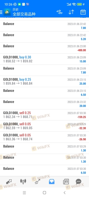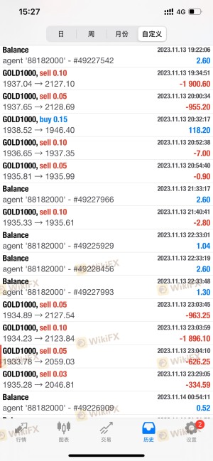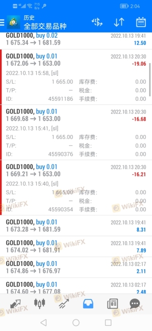 Spread là 50, hoàn trả là 12, khi mua 1000 lô, spread trở thành 26. Slippage rất nghiêm trọng. Trên nền tảng thử nghiệm, không gần như không có độ trễ, nhưng trong giao dịch thực tế, slippage thường xảy ra. Độ trễ nghiêm trọng nhất là khoảng ba giây trong quá trình công bố việc làm hàng tháng. Luôn có người trực tiếp phát sóng và cung cấp tín hiệu giao dịch. Tỷ lệ thành công là 40%. Xóa tài khoản: miễn là bạn phàn nàn về những vấn đề này, họ sẽ lặng lẽ và bắt buộc xóa tài khoản của bạn. Nếu bạn tranh luận với dịch vụ khách hàng, họ sẽ trả lời rằng bạn có thể chọn nền tảng, và nền tảng cũng có thể chọn bạn.