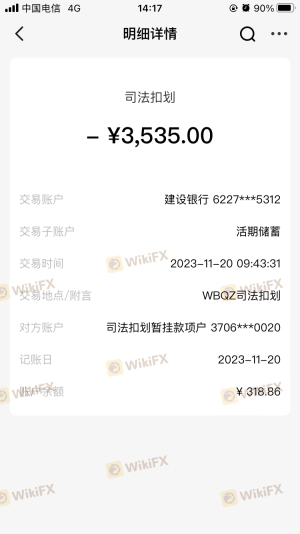 Tổng cộng 5.012 nhân dân tệ đã được rút, trong đó 3.535 nhân dân tệ đã bị phong tỏa và khấu trừ.
