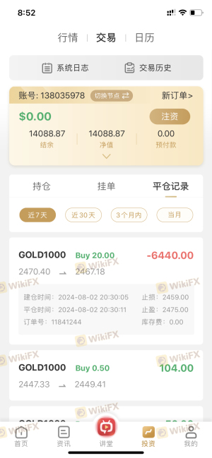 Một nền tảng gian lận với tổn thất nghiêm trọng và hủy tài khoản (igold)
