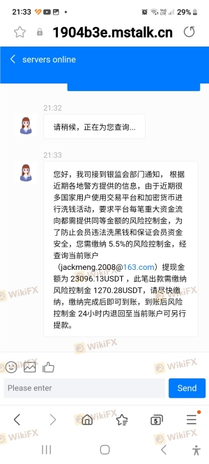 Tôi vào trang web này để mua coin dưới sự giới thiệu của một cư dân mạng. Đầu tiên, tôi kiếm được 260 usdt và rút tiền, sau đó tôi tiếp tục đầu tư gần 15.000 đô la Úc. Khi tôi chuyển lại 4000usdt, họ đã giữ và đóng băng tài sản với lý do đó không phải là địa chỉ của tôi. Sau khi tôi thanh toán cái gọi là xác minh vốn, tôi cần thêm 80% doanh thu nữa. Khi tôi muốn rút tiền, tôi phải trả 2210usdt. Sau khi tôi thanh toán, tôi phải trả 5% số tiền mỗi ngày cho phí thanh toán chậm. Sau khi thanh toán phí thanh toán, 1270usdt khác đã được thêm vào quỹ kiểm soát rủi ro. Đây là một lừa đảo lừa đảo, hãy cẩn thận.
