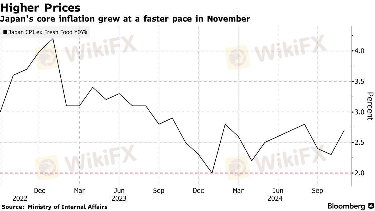 Japan's core CPI (ex-fresh food) rose 2.7% YoY in November, exceeding forecasts and accelerating from October's 2.3%. Rising energy costs, driven by waning utility subsidies, fueled the increase. While BOJ held rates steady, stronger inflation & a weak Yen raise expectations for a potential January hike, though March remains a possibility. Focus remains on real wage growth and consumer spending.