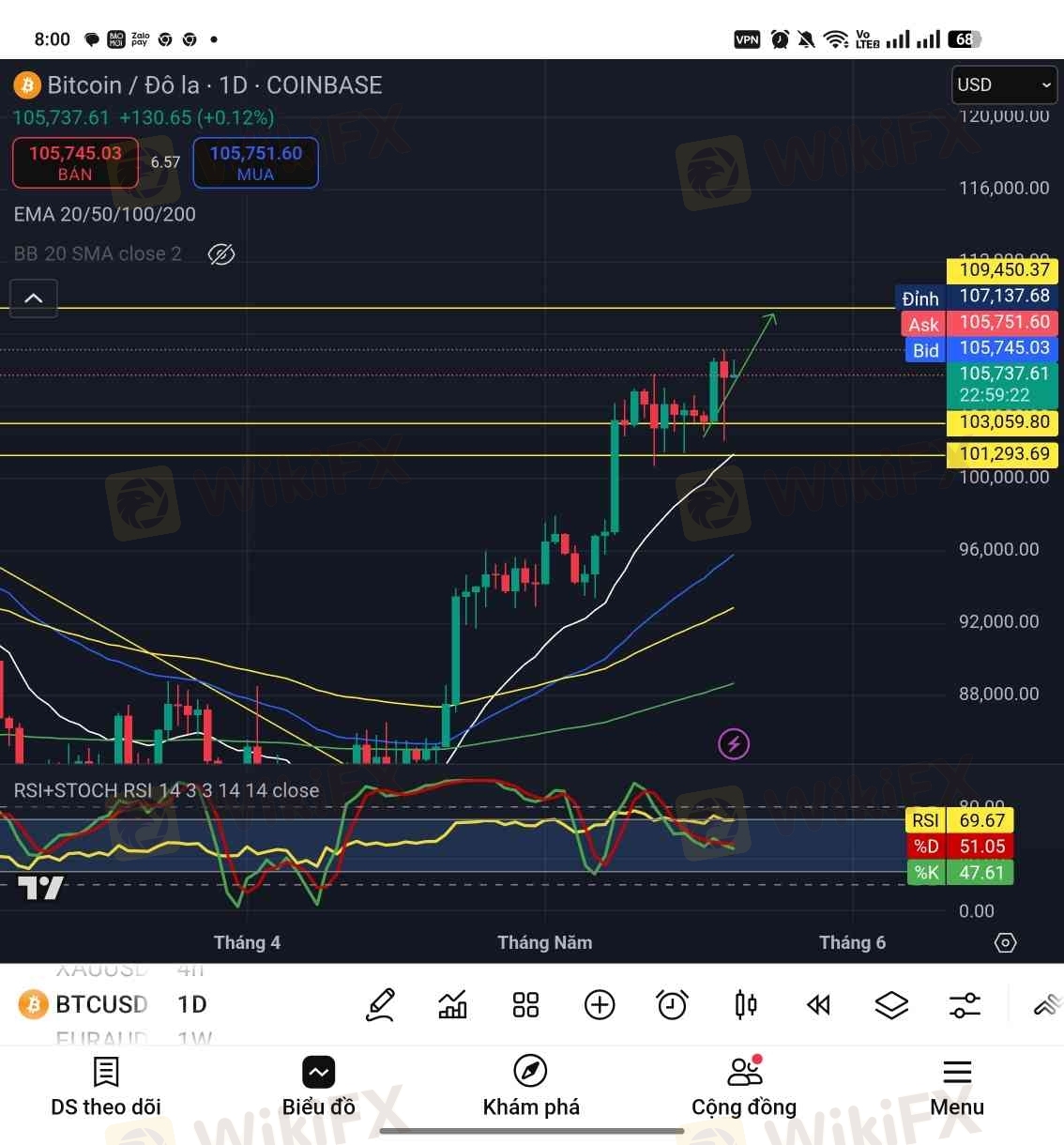 Btc tại vùng này khả năng sẽ còn sw và có cú giảm bất ngờ tại 106-107 khi ndt đóng lệnh khi giá về hoà do đu đỉnh trước đây và sẽ break khỏi 106 lên 109-112 vẫn ưu tiên canh buy lên tại vùng 102-103