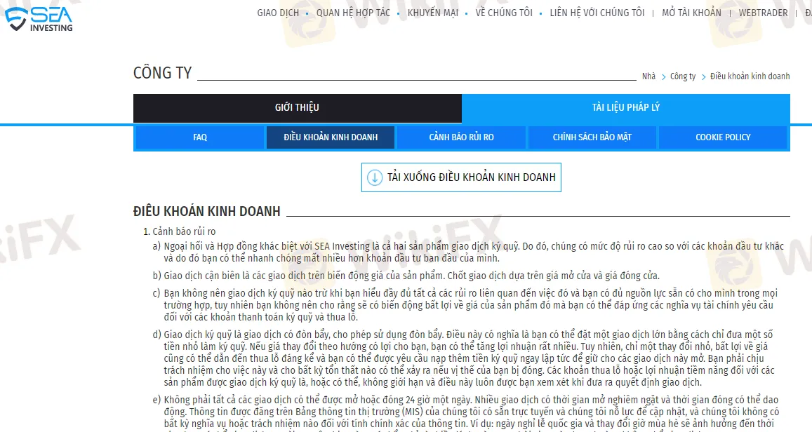 Ngoài giấy phép SEA Investing còn đảm bảo độ bảo mật cho người dùng thông qua các điều khoản kinh doanh và chính sách bảo mật rõ ràng. Nhà đầu tư có thể tải xuống và xem chi tiết tại website của SEA Investing.