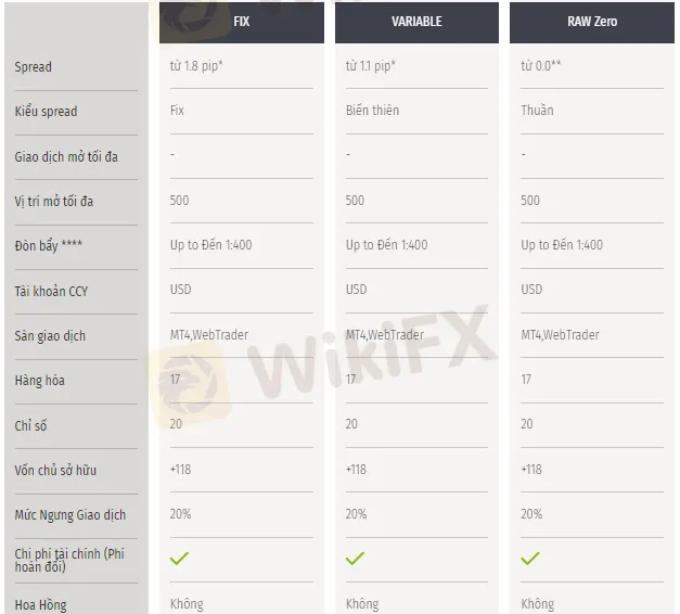Các loại tài khoản hỗ trợ: SEA Fix, SEA Variable, SEA Raw Zero.