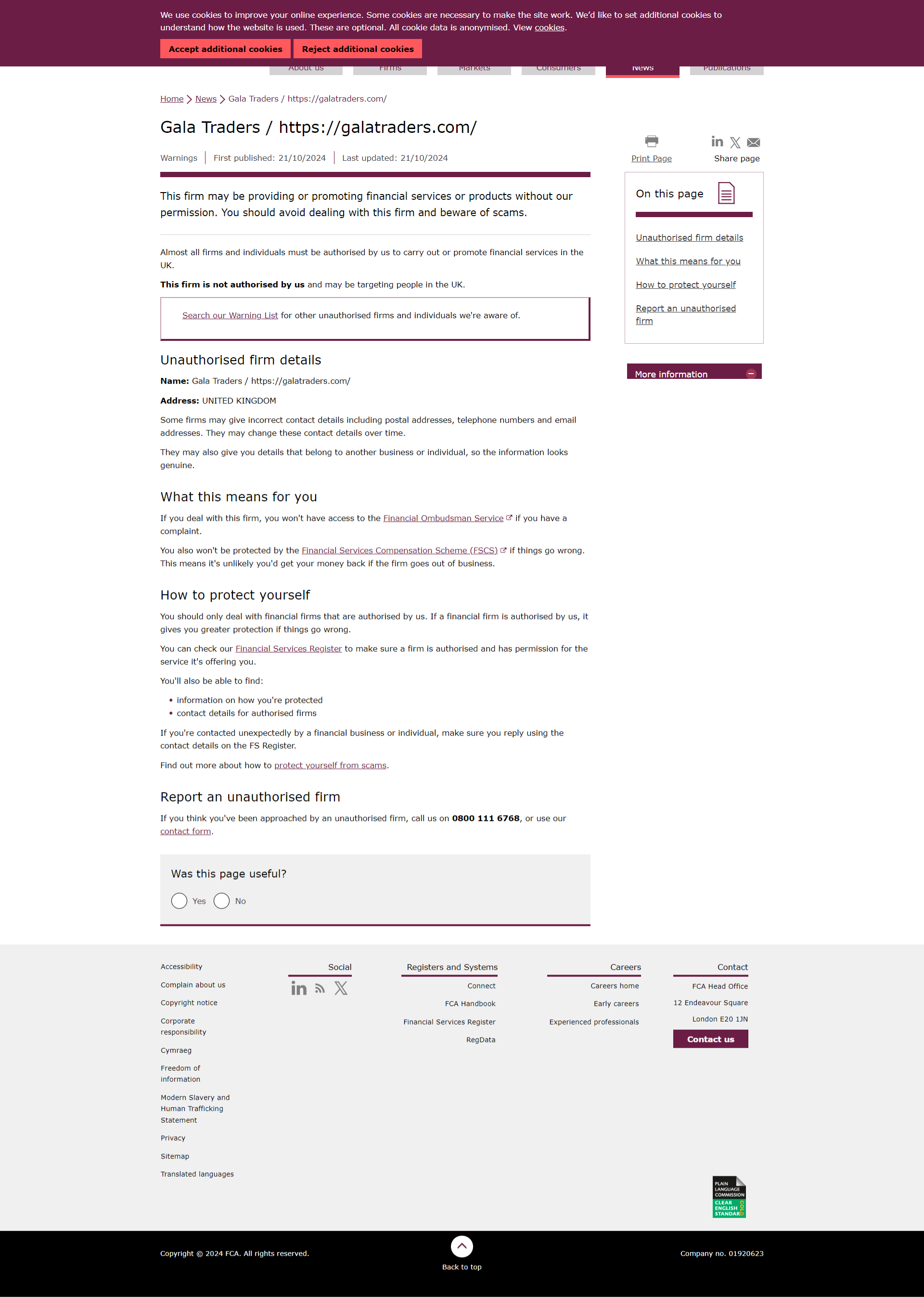 Danh sách cảnh báo FCA về các công ty không được ủy quyền Gala Traders / https://galatraders.com/.