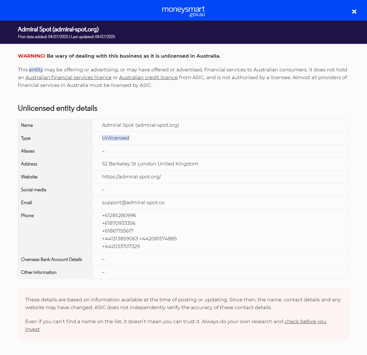 Ủy ban Chứng khoán và Đầu tư Úc (ASIC) là một cơ quan độc lập của Chính phủ Úc. Nó được thành lập vào ngày 1 tháng 7 năm 1998, dựa trên các khuyến nghị của Điều tra Wallis, để giám sát các công ty Úc. Vai trò của ASIC là thực thi luật dịch vụ tài chính và điều chỉnh hành vi của công ty để bảo vệ người tiêu dùng, nhà đầu tư và chủ nợ của Úc. Thẩm quyền và phạm vi của ASIC được xác định theo Đạo luật Ủy ban Đầu tư và Chứng khoán Úc năm 2001.