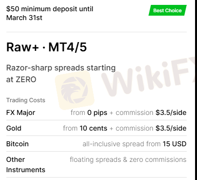 | Raw+账户 | 外汇主要货币对 | 从0点差 | 每边$3.5 |