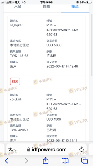 一头被宰的猪被无良的诈骗集团在1个月就汇入50000美金直到连不上官网,询问助理和客服他们告知我系统在大升级,等了几天两位回覆我升级已完成请我连上,但再也连不上了,人也人间蒸发了,报警-警察说你被骗了,要有心理准备你的钱拿不回来了。我才认真收寻这家IDFPOWER ,在官网上公司登记在伦敦,电话号码却是柬埔寨。申请出金永远停留在待审核,