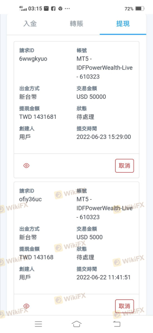 这些家伙是骗子,会像他们对我做的那样试图从你身上拿走你的钱。它们是交易骗局下全球网络犯罪网络的一部分 最近的 fintrack/org 恢复行动曝光了了IDF Power 财富有限公司的活动并导致我的投资被退回。不要参与这家公司,只是一个彻头彻尾的骗子