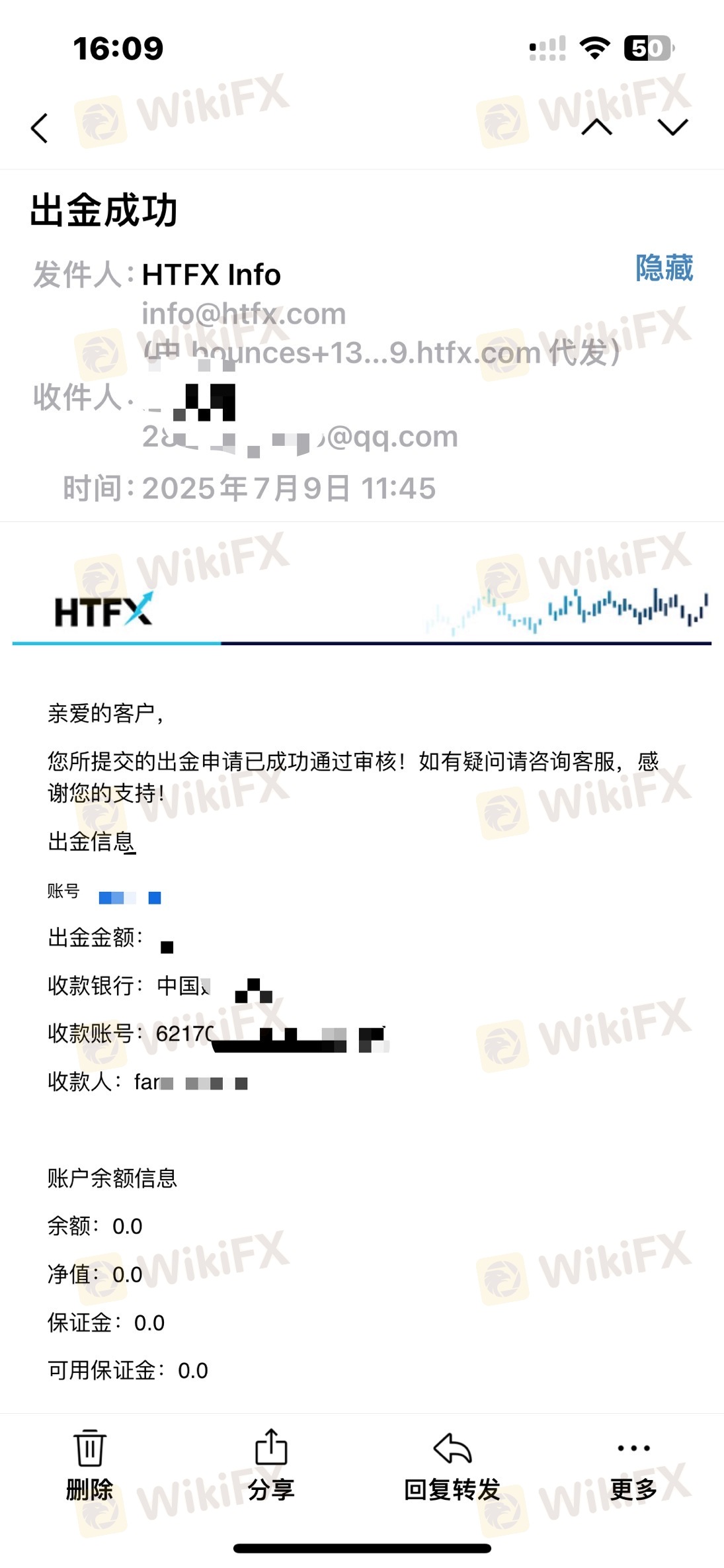 HTFX外汇平台的代理公司业务员经常发给我一些盈利做单截图引诱开户入金,也经常在朋友圈发高回报截图,可以在他们名下开立账户挂他们系统单跟单,每个月月化收益15%到25%,,于是入金60000u跟两倍他们的019策略,一个月后也就是2025年5月5日被他们把账号做爆仓,全部亏空,原本说到的风控完全没有任何作为,我没有理由不怀疑这个平台就是利用开大手数,爆客户仓,然后吃客损。我的诉求很简单,把我的钱还给我,不然我将打电话报警,举报该平台引诱诈骗。