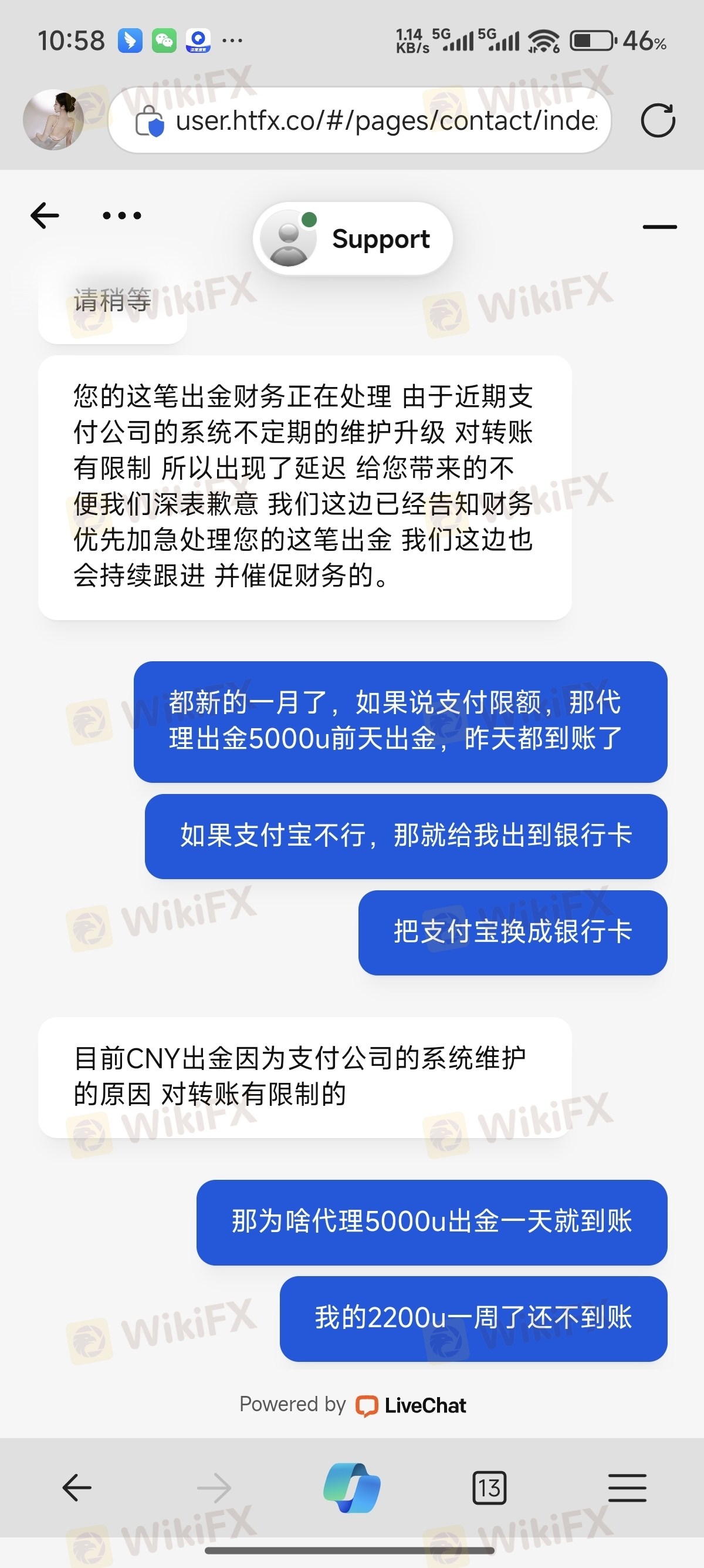 已经几天无法到账每天使用耐心等待来敷衍客户 像这种不给具体原因一般都是一天回复一句然后选择不回复 现在叫他们退回本金几乎没半个回复