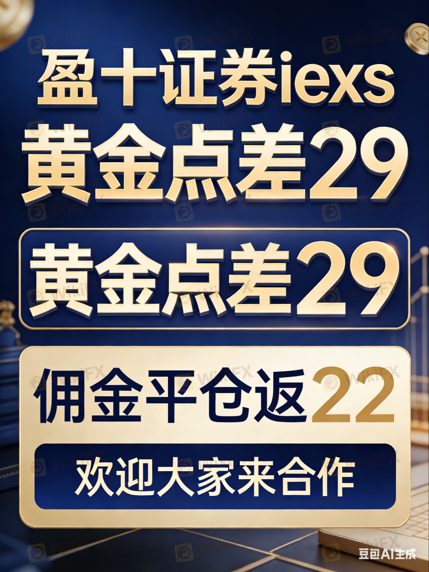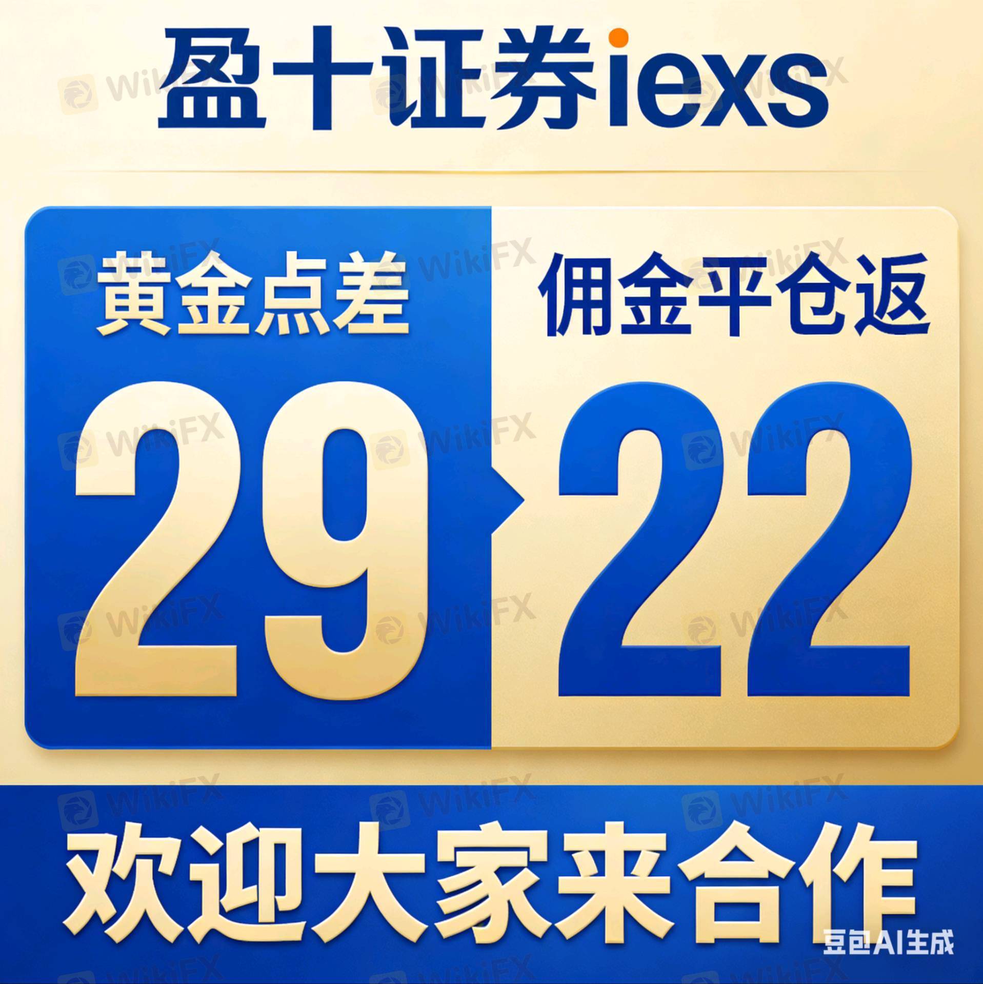 3. 盈十IEXS黄金福利:点差29,平仓即返22佣金,交易省心、返佣给力,欢迎对接!