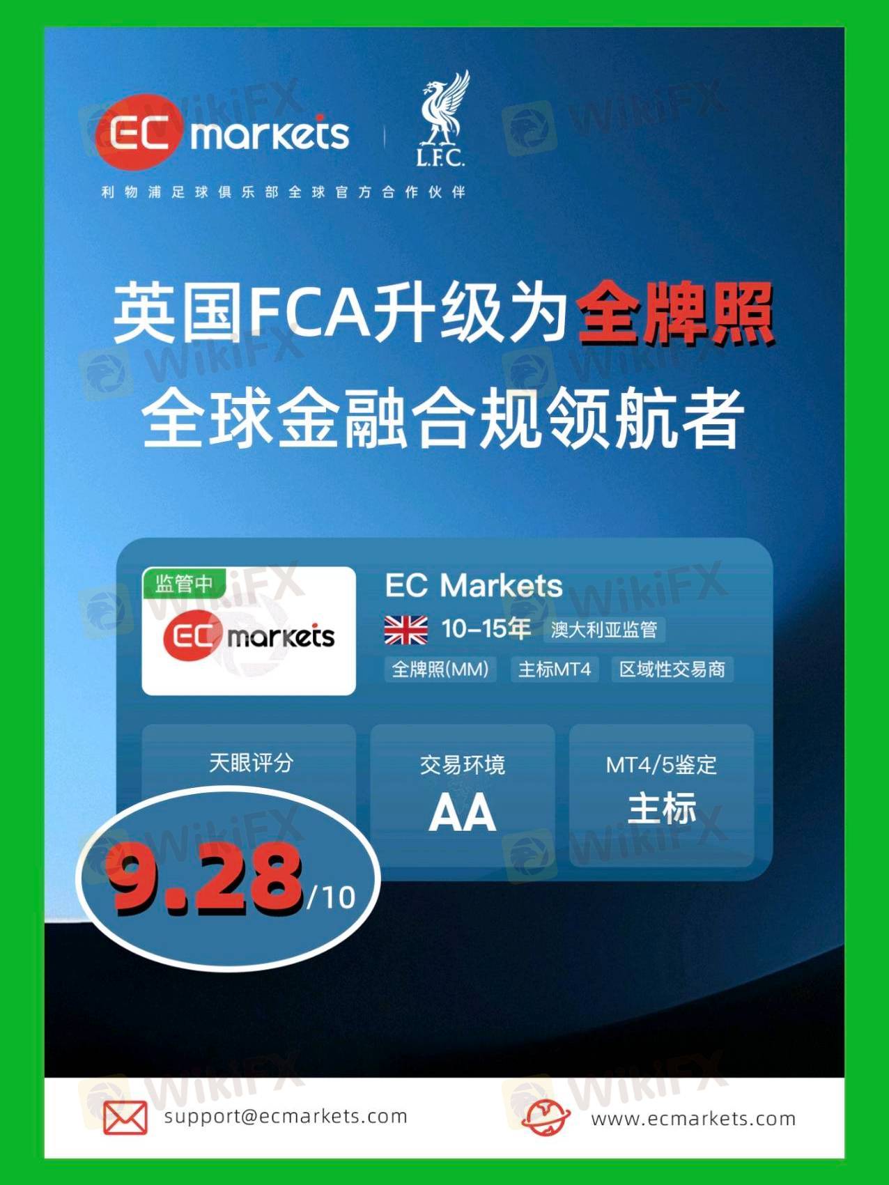 EC Markets接受FCA、ASIC等多国监管认证,提供高效的客户服务,帮助您降低交易成本。