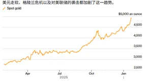 近期金价的强劲上涨表明,贵金属市场的动能明显强于此前市场预期。今日早间,现货黄金强势突破4900美元/盎司关口,较日内低点反弹近130美元,最高触及4940.79美元,再度刷新历史新高。新年以来,现货黄金走势凌厉,本月累计涨幅已达13%,总计上涨近600美元。黄金一向被视为典型的避险资产,其价格走势通常与股市呈负相关,长期涨势也相对温和。但多位分析人士指出,当前黄金的中长期表现正显现出少见的强势特