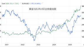 美联储将于本月18日公布最新一期利率决议结果,主流预期认为,降息25基点几成定局。激进的观点认为,美联储有可能在10月份和12月份再次降息,2026年将延续降息趋势。在如此强的降息预期之下,美元指数节节败退,非美货币和避险资产节节攀升。但是,非美货币的龙头品种——欧元,和避险资产的龙头品种——黄金,涨幅差距巨大。7月30日至今,伦敦金从最低点3267美元涨至最高3659美元,累计涨幅约12%;同期