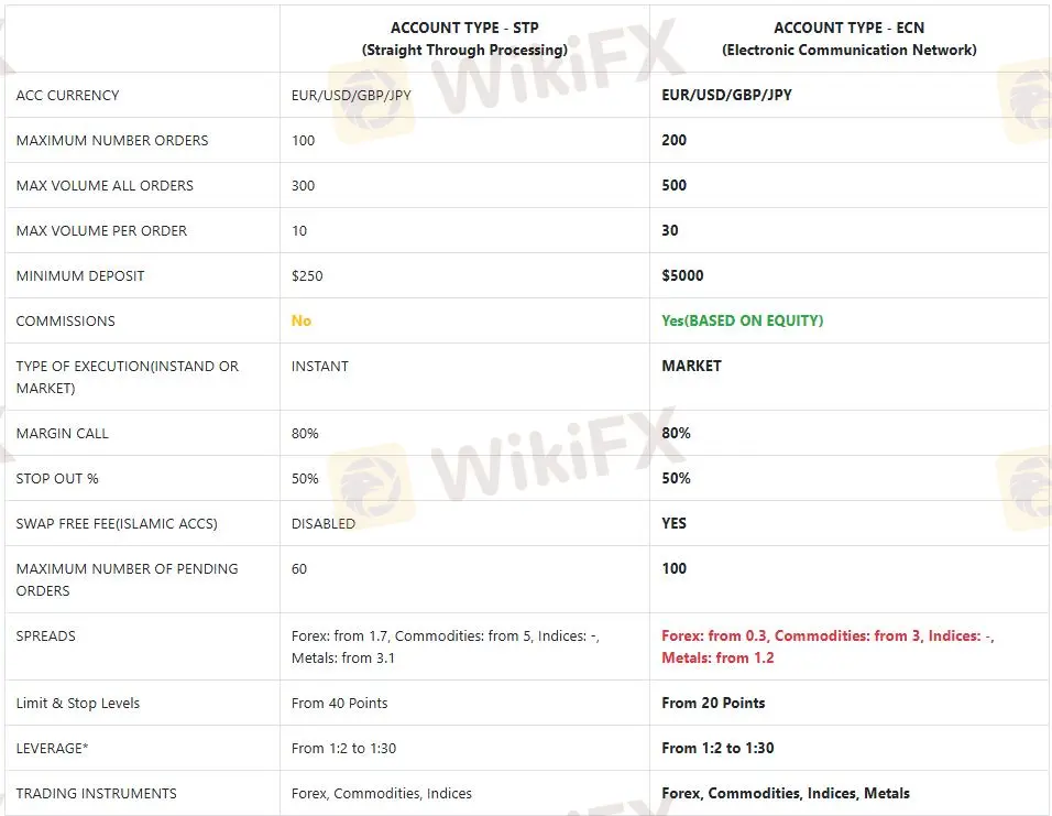AC FOREX 提供两种类型的账户,STP账户和ECN账户。