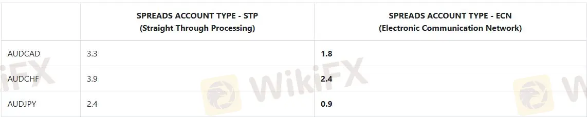 STP账户点差范围为2.4至3.9,不收取佣金;ECN账户点差为0.9至2.4,并且收取佣金。