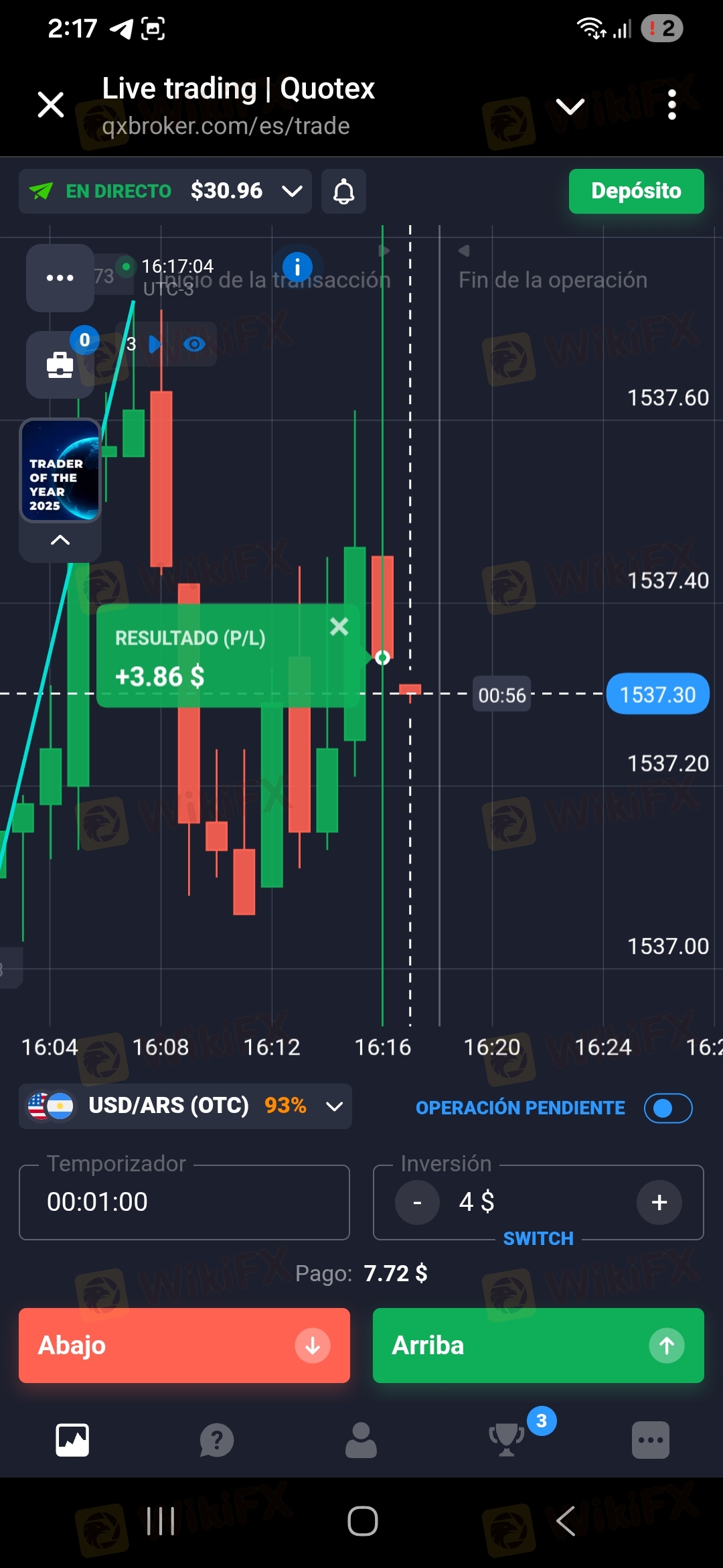 | 交易平台 | Quotex(电脑、手机) |