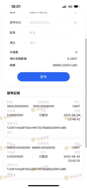 最初我投资了 11000 usdt,然后要求 1300usdt 进行注册,然后又要求 3000usdt,因为他们说 3000 投资槽已满,我需要进入下一个频段,即 6000。经过 5 天,他们退回资金,又要求 8000usdt 来解冻资金,之后他们又要求另外 3000usdt 进行转账,我肯定我被骗了。