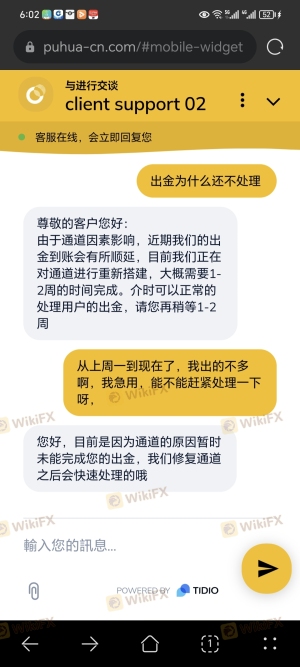 2023年10月初一个推销员说诱骗我来浦华开户,10月18日我入金操作,等到10月29日,这个推销给我打电话说平台出金通道有问题,出金会慢,大概需要一个礼拜才能到账。于是我在10月30日上午平了账户里所有单子,开始出金,结果中午这个推销又给我打电话说出金通道被查封了,出不了金了。全程电话我都有录音。