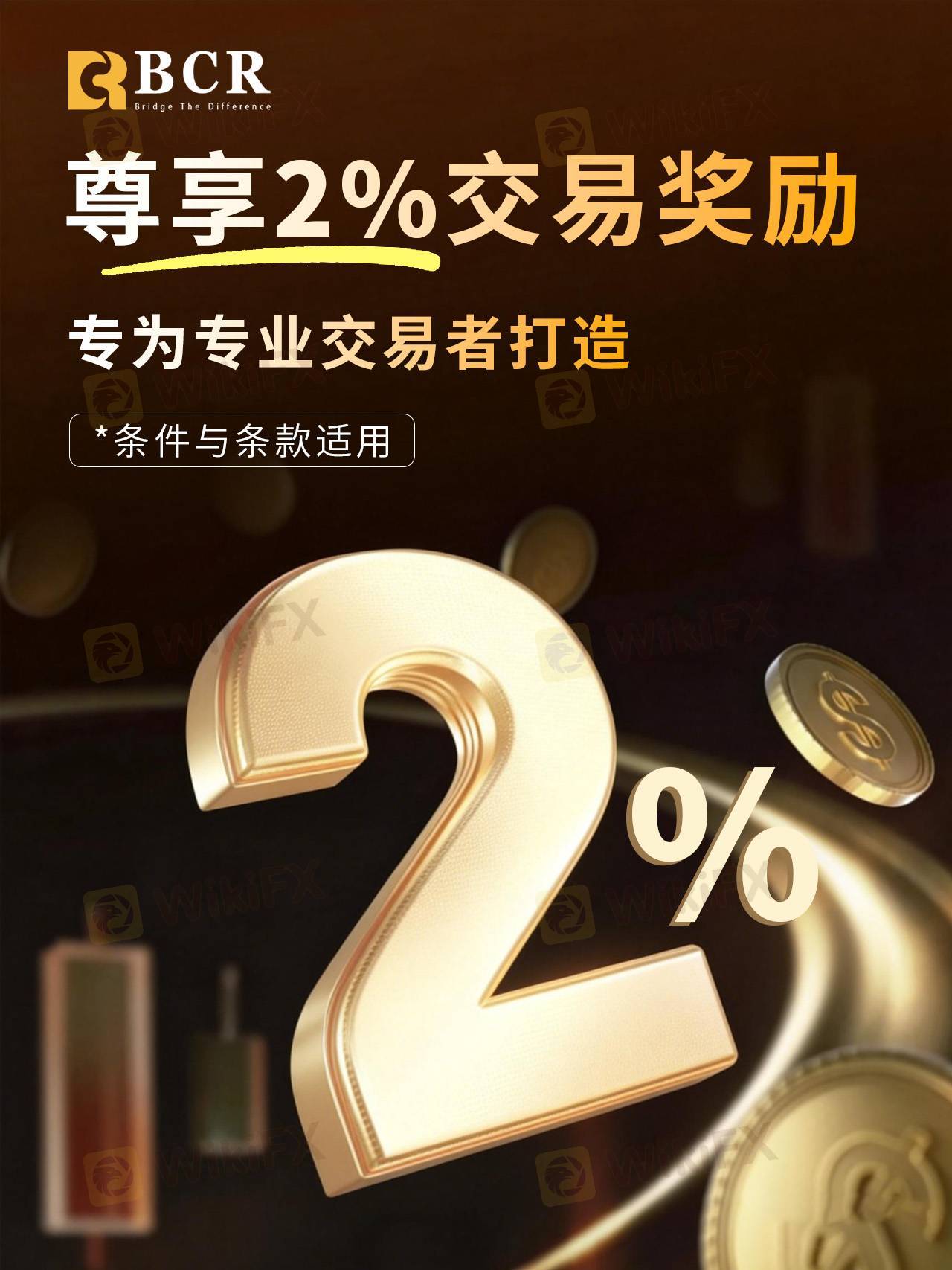 专业交易者,就用专业平台 BCR。尊享2% 交易奖励,助力放大交易成果