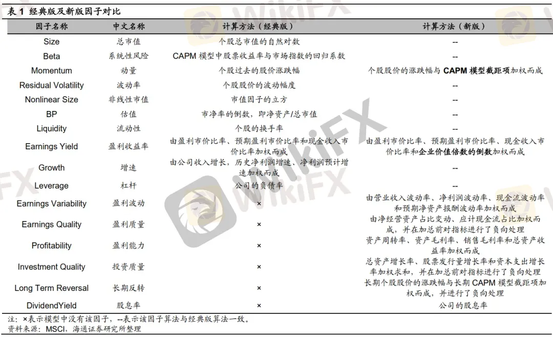 下表为经典版因子与新版因子的因子计算方法对比。站在增强因子超额收益分解模型解释力度的角度,我们选取了16个二级因子进行构建,这16个二级因子涵盖了经典模型原有的10个因子,并在此基础上增加了6个新的解释因子,而原有因子中动量和盈利收益率的算法也有小幅变动。