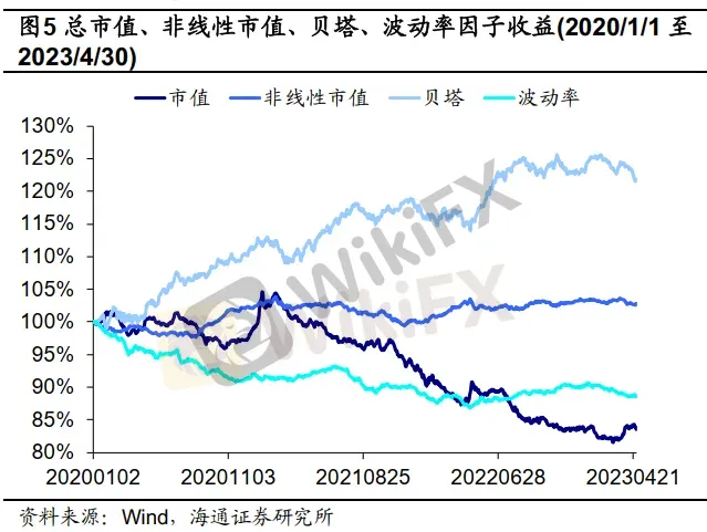下图为2020年以来各因子的累计收益情况。举例来看,在2021年之前市值因子几乎没有积累收益,仅依靠2020年年底积累了小幅度的正向收益,但自2021年开始市值因子的因子收益曲线稳定向下,说明近两年来小市值个股更加占优;动量因子方面,2021年8月之前,高短期动量个股的收益表现更好,而从2021年4季度以来,动量因子开始失效,也正是从这一时期开始逆向投资风格的基金重新捕获市场关注;估值因子方面,2021年前后市场风格发生转变,因子收益曲线从稳定向下发生反转,开始向上累计正向收益,说明2021年之后小估值个股表现更优,这也是近年来涌现出了一批以小市值选股为主要投资策略的基金经理的原因之一。