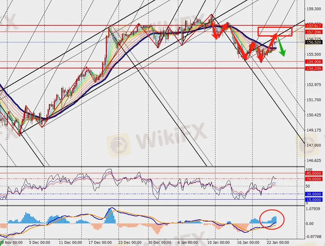 美元兑日元H4级别震荡上行,MACD双线和量能柱遇阻收敛。即使加息,日元走强的步伐也可能受到限制,因为美联储关注的重点已经放在暂停降息上,市场迟早会通过抛售日元要求日本央行再次加息,且这种情况发生的可能性很大。