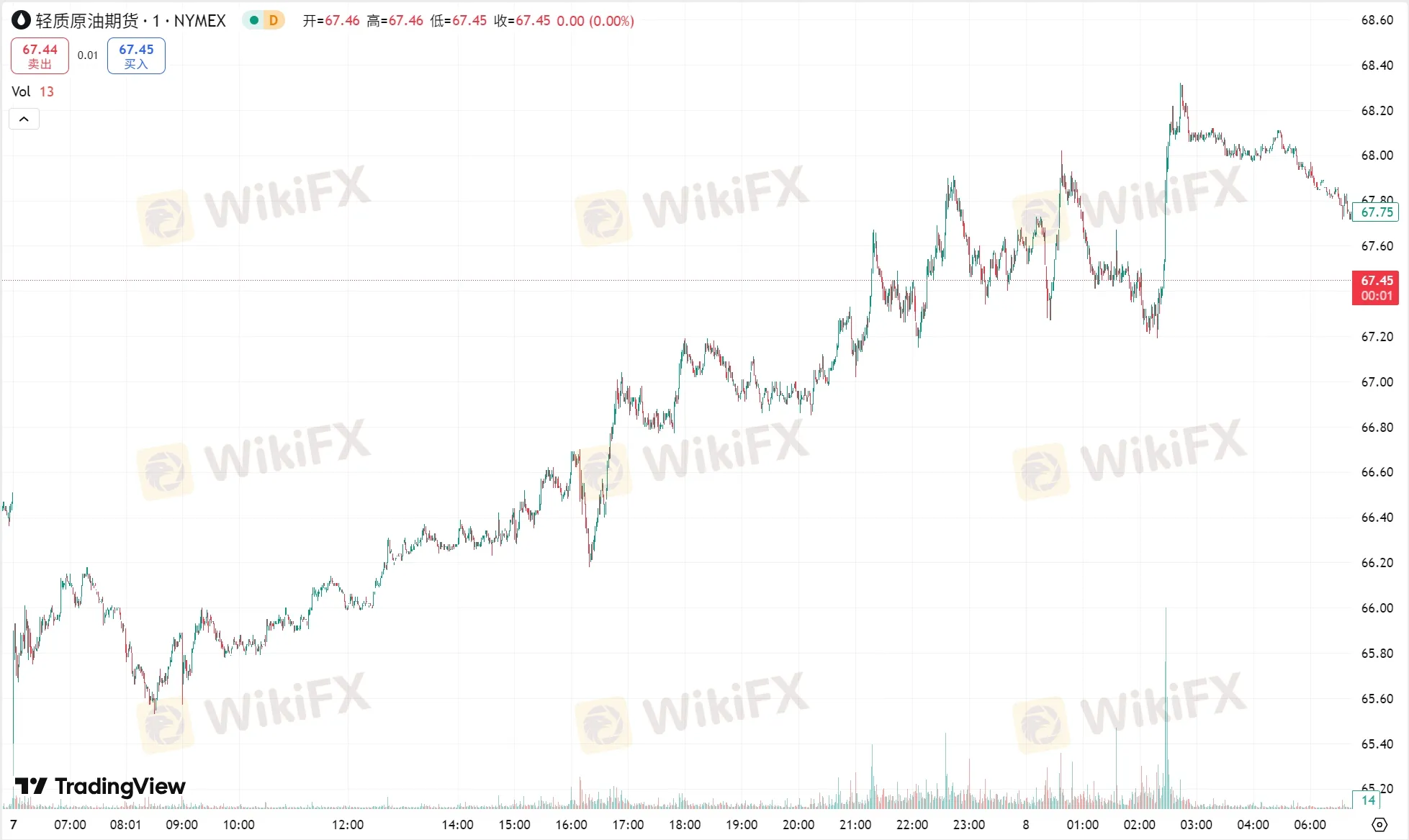 周一,受强劲需求迹象抵消 8 月 OPEC+ 超预期增产的影响,原油收涨逾 1%。截至收盘,WTI 8 月原油期货上涨 0.93 美元,涨幅 1.39%,报 67.93 美元/桶;布伦特 9 月原油期货上涨 1.28 美元,涨幅约 1.87%,报 69.58 美元/桶。