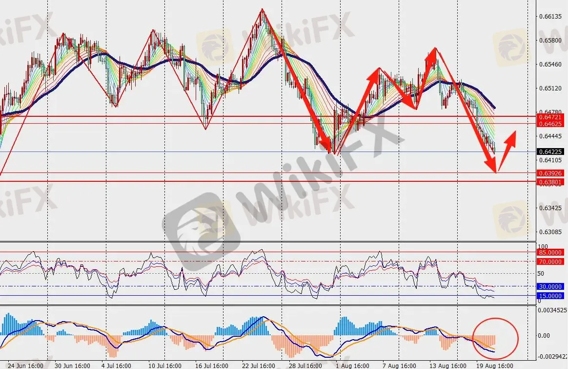 技术面:澳元兑美元H4级别震荡下行,并在48日多空分界线下方运行。此外,MACD双线和量能柱在零轴下方收敛。澳大利亚房产市场反弹预示着即将到来的春季销售季或将迎来一波热潮,同时影响投资者对澳元需求。