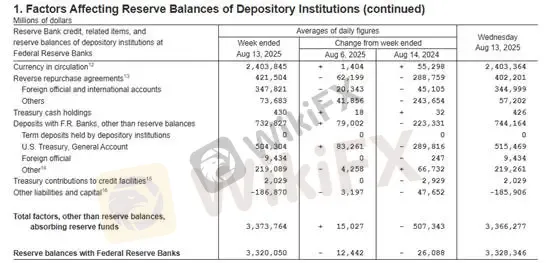 截至上周四(8/14)美联储资产负债表资料,当前银行存款准备金水平为3.3兆美元。