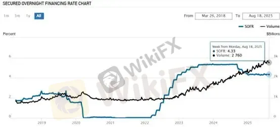 (图四、SOFR利率与交易量;资料来源:NYFED)