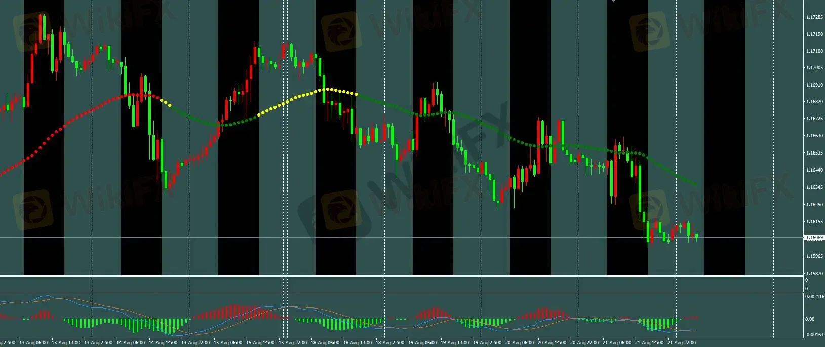 欧美 H1 趋势线颜色目前维持绿色,按照 H1 的交易模型在价格 1.1668 附近入场空单已达成盈利目标。今天可参考 M5 综合运用模型做日内短线交易。