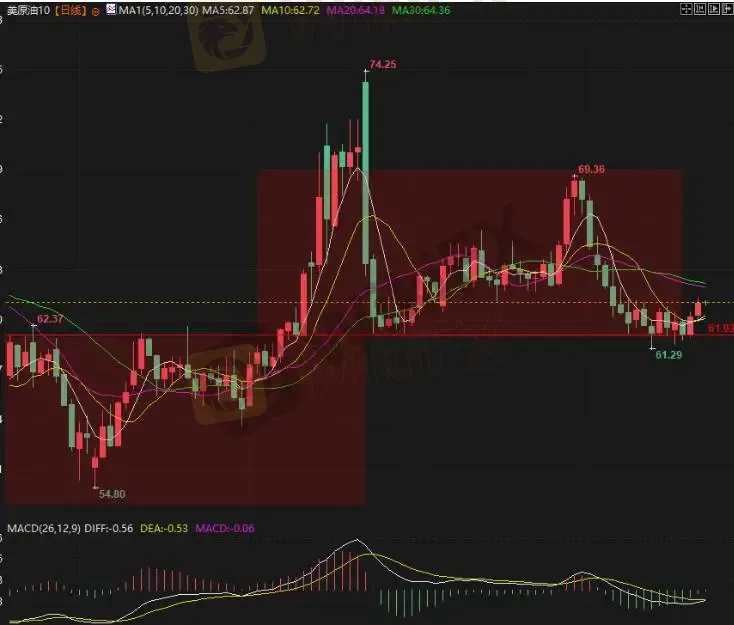 日线级别,MACD绿柱收窄且零轴下方形成金叉,5日、10日均线拐头向上,油价运行于近期成交区间高位。上方第一压力位64.00美元/桶,突破或助力20日、50日均线修复;下方支撑依次为5日、10日均线聚拢区(62.72-62.80美元/桶)及61.93美元/桶箱体分界线。