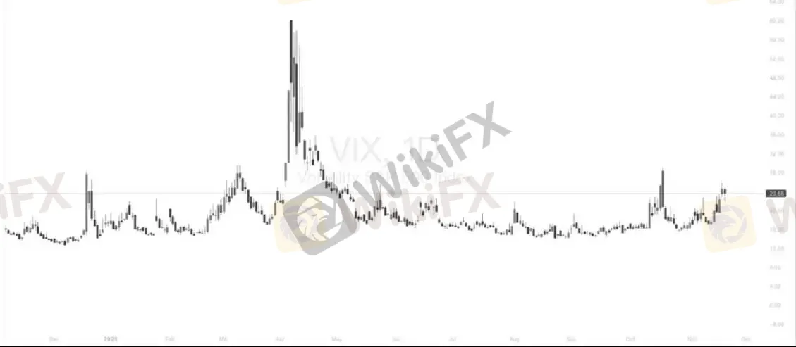 VIX 昨日下跌约 4%,从高位快速回落,显示避险情绪明显缓和,市场风险偏好短线上升。此前的连续拉升已逼近关键压力带,而这次回落意味着恐慌情绪未能进一步扩散,有利于美股指数特别是科技股的企稳反弹。若 VIX 后续继续跌破 22,一旦情绪持续降温,美股有望延续修复走势。