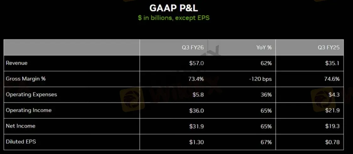 盘后焦点集中在英伟达亮眼成绩:三季度营收同比增长 62% 至 570 亿美元,全面超越市场预期,数据中心需求依然强劲;公司预估四季度营收将达到 650 亿美元,显著高于市场一致预期,缓解了近期市场对 AI 投资降温的担忧,推动盘后股价大涨逾 5%。