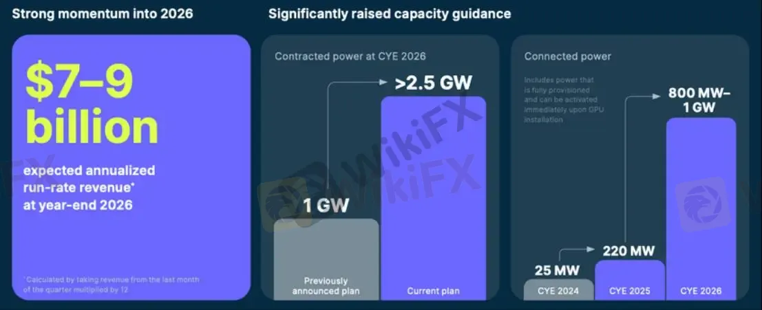 风险面:对 Nvidia 依赖度高(GPU 供应瓶颈)、行业竞争激烈、持续亏损、高资本开支导致潜在稀释(ATM 计划最高发行 2500 万股)。但考虑到 大单持续推进、产能上线即售罄、扩容效率不断提升、管线订单 Q3 环比增长 +70% 至 40 亿美元,“高增长 + 高确定性”的组合依旧成立。