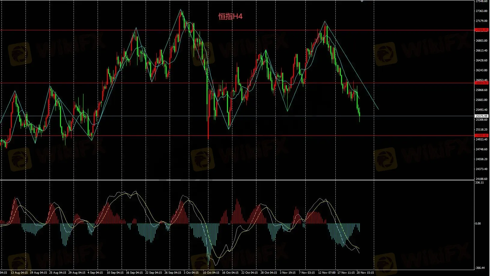恒指H4当前看空,只要价格维持在26000下方持续看空,目标25000。