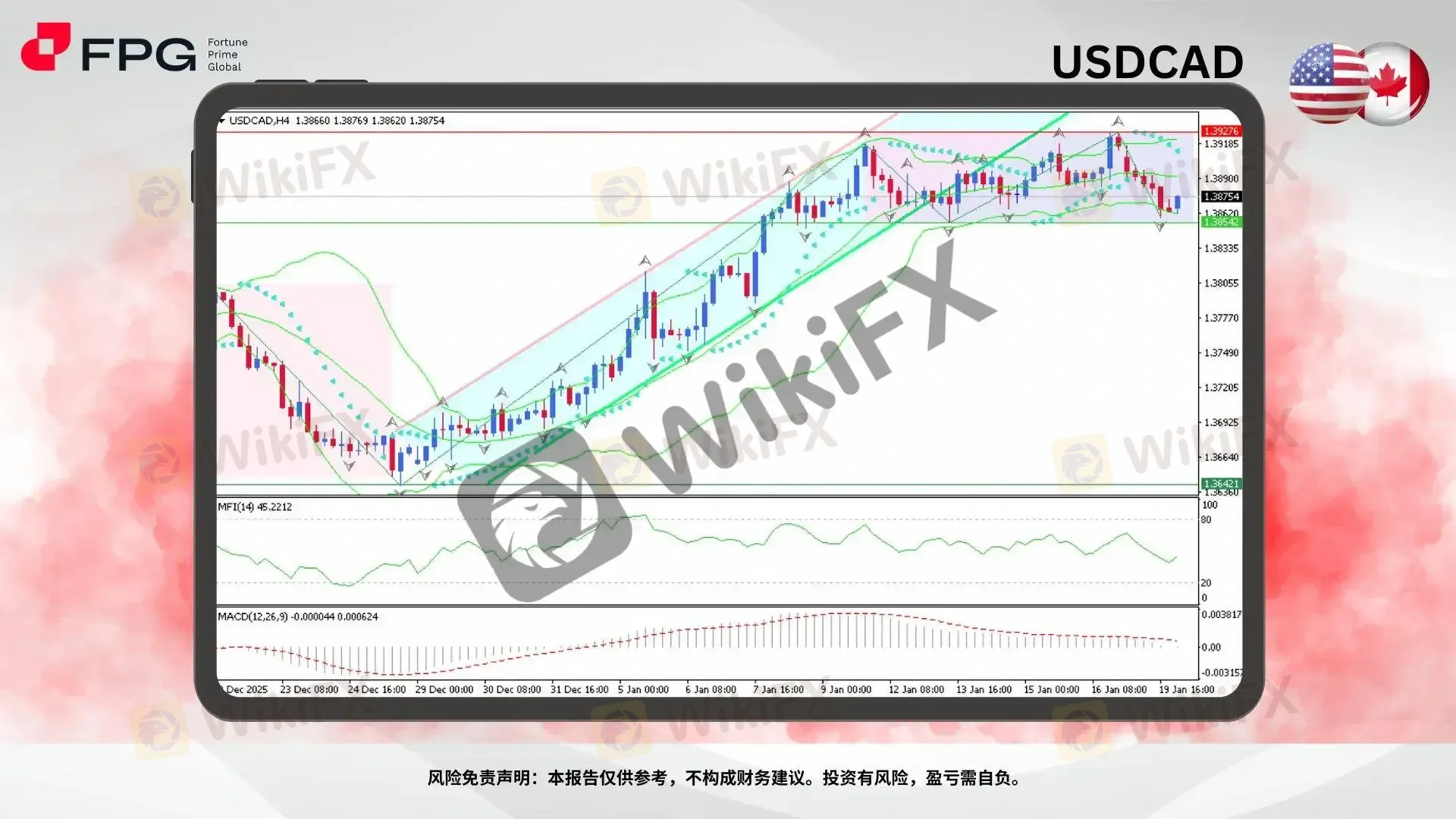 当前价格:USDCAD 约 1.3875,在强势拉升后进入整理阶段。